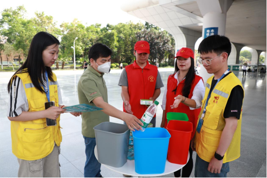 5月13日,南寧礦業(yè)集團(tuán)聯(lián)合康城汽車集團(tuán)在南寧東站開展“垃圾分類齊參與 四色分類記心間”志愿服務(wù)活動,將綠色文明課堂搬進(jìn)交通樞紐,通過沉浸式互動體驗(yàn)讓垃圾分類知識“活起來”。